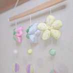 鈴やタッセルまで細かなディテールが施され、ひとつひとつがふわふわと温かみのある、優しい触りの壁掛けつるし飾りです。